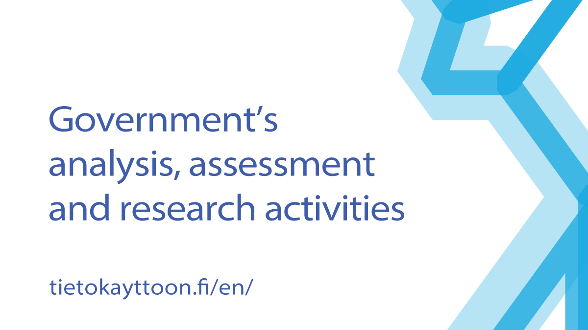 The Government’s joint analysis, assessment and research activities (VN TEAS) produce data used to support decision-making, everyday operations and knowledge-based management. They are guided by the Government’s annual plan for analysis, assessment and research. The content of the reports published in the publication series of the Government’s analysis, assessment and research activities is the responsibility of the producers of the data in question and does not necessarily represent the view of the Government. For more information, visit https://tietokayttoon.fi/en.