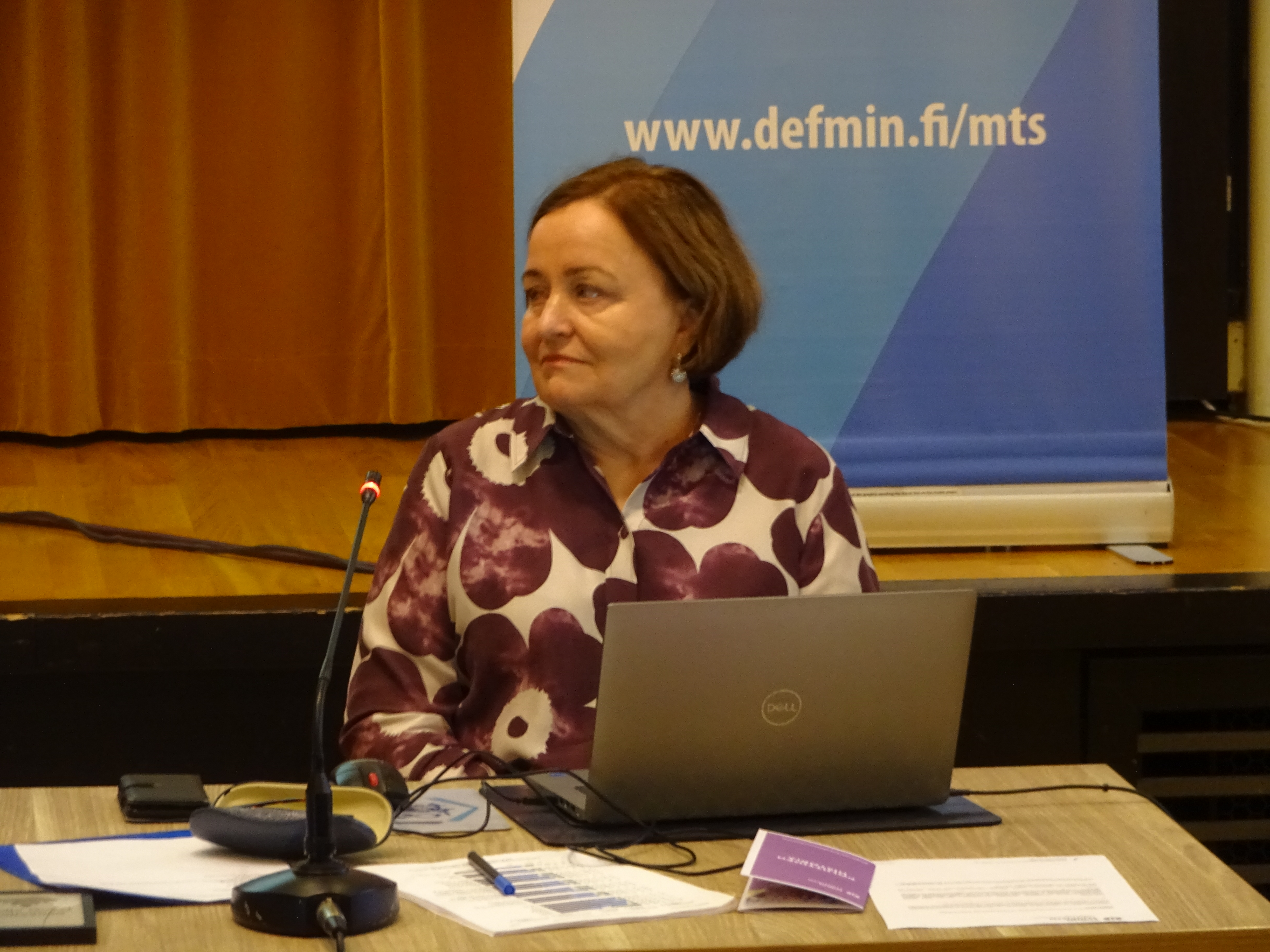 MTS:n pääsihteeri Heli Santala mielipidetutkimuksen infotilaisuudessa 1.12.22 Ostrobotnian juhlasalissa. Kuva: Markus Kinkku.