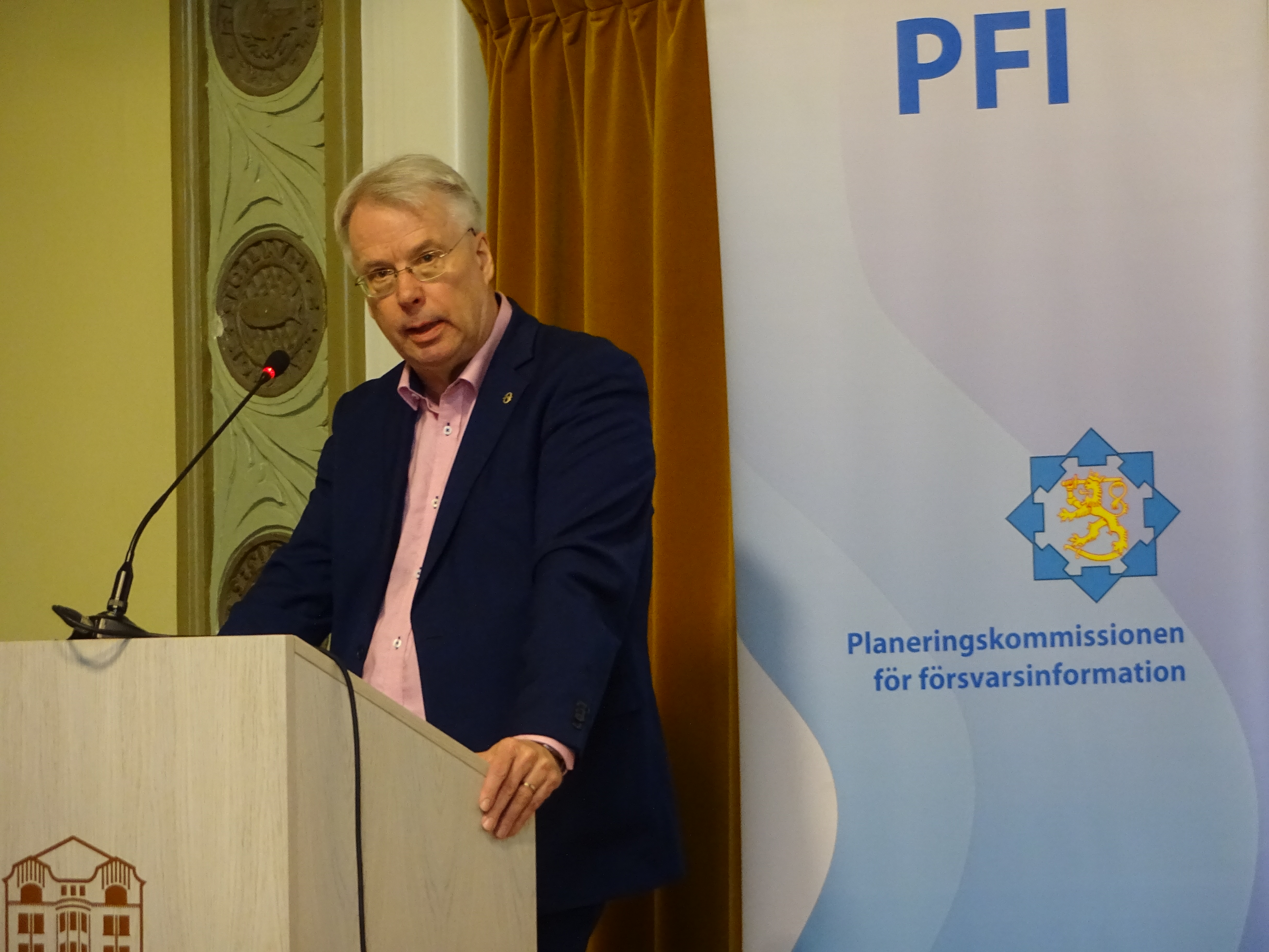 MTS:n tutkimusjaoston puheenjohtaja Timo Perälä mielipidetutkimuksen infotilaisuudessa 18.5.22 Ostrobotnian juhlasalissa. Kuva: Markus Kinkku.