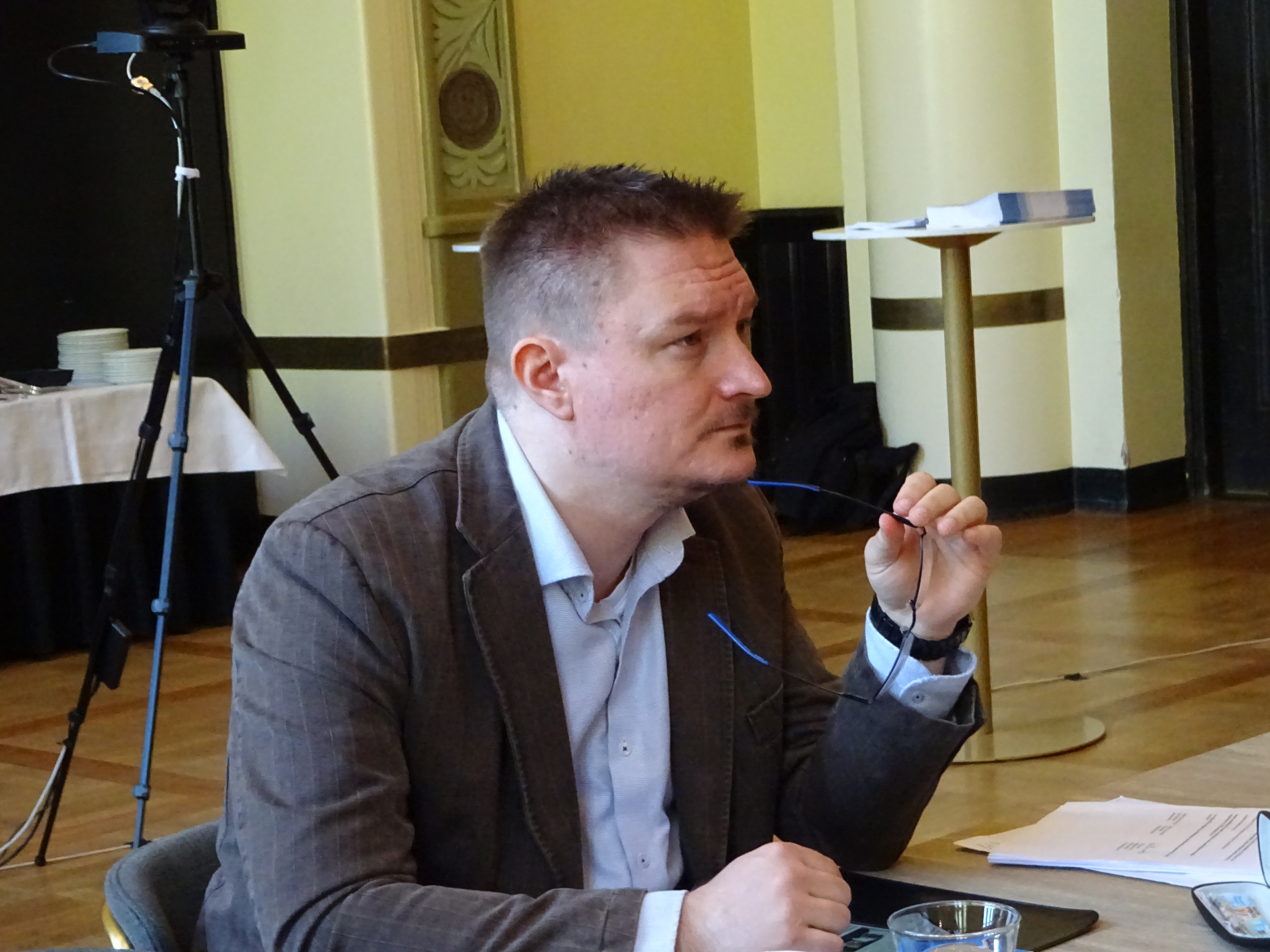 MTS:n puheenjohtaja Harri Järvinen mielipidetutkimuksen infotilaisuudessa 18.5.22 Ostrobotnialla. Kuva: Markus Kinkku.