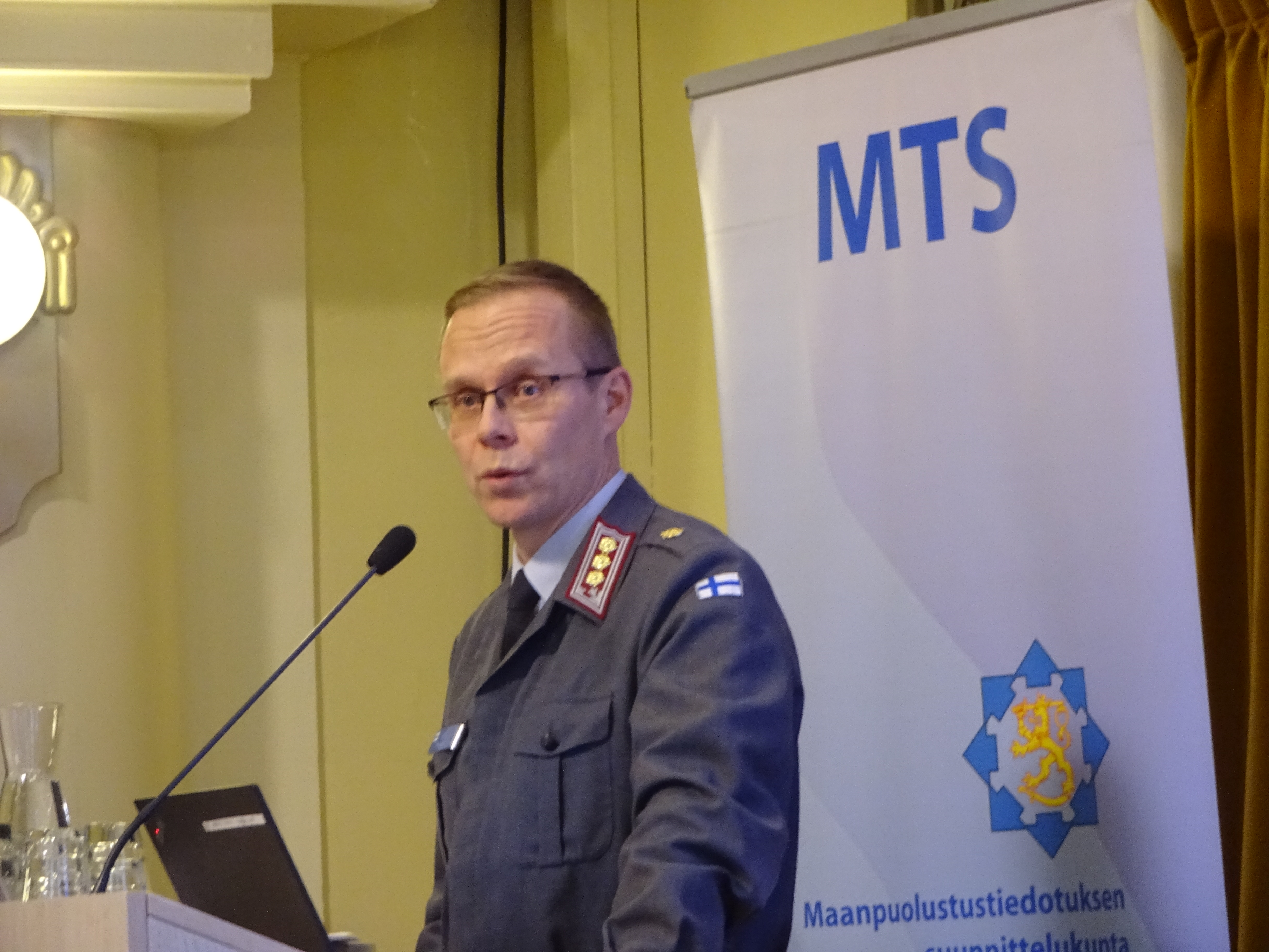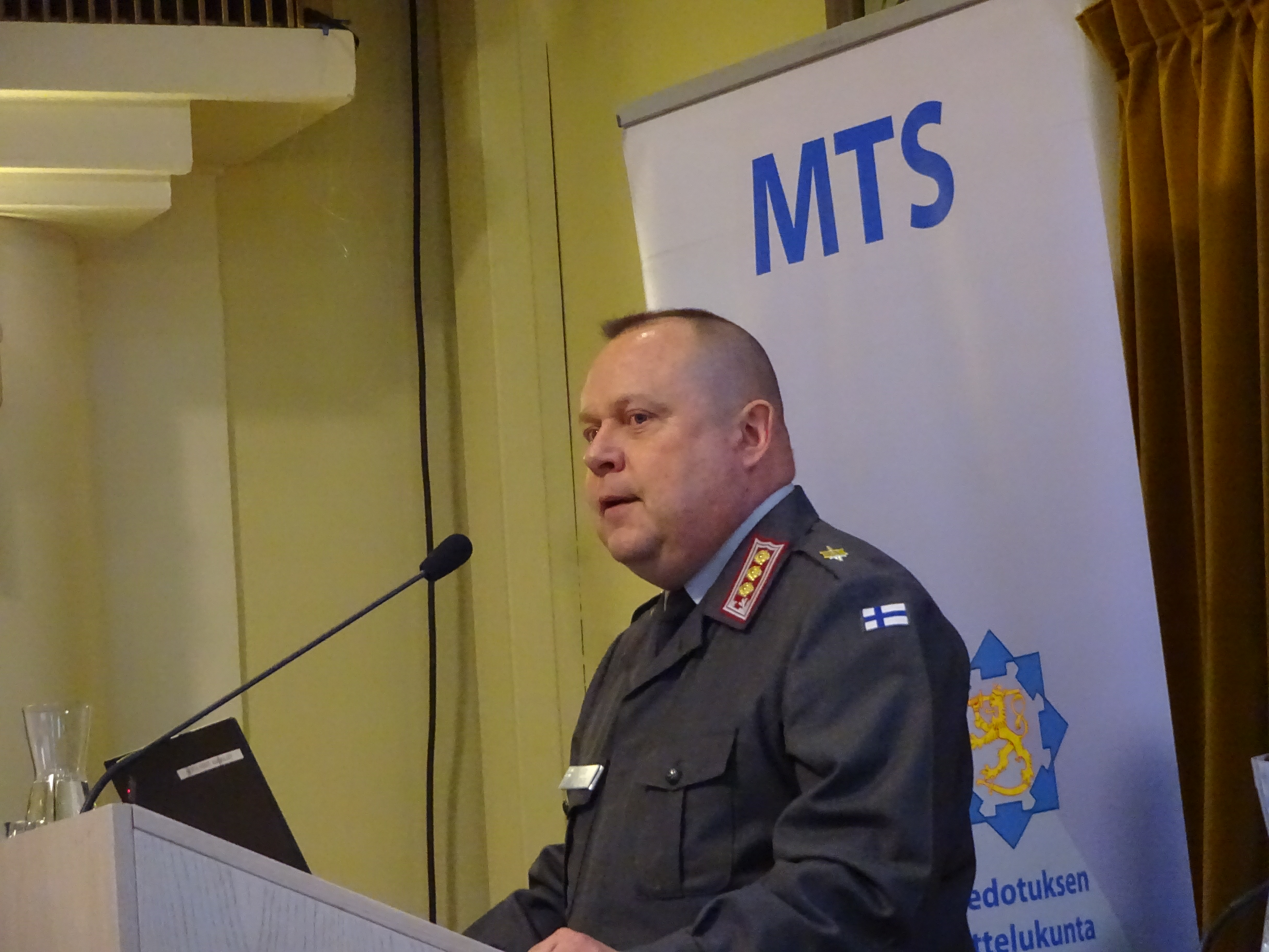 Puolustusvoimien strategiapäällikkö, kenraaliluutnantti Janne Jaakkola MTS:n journalistiseminaarissa 12.12.2023 Ostrobotnialla. Kuva: Markus Kinkku.