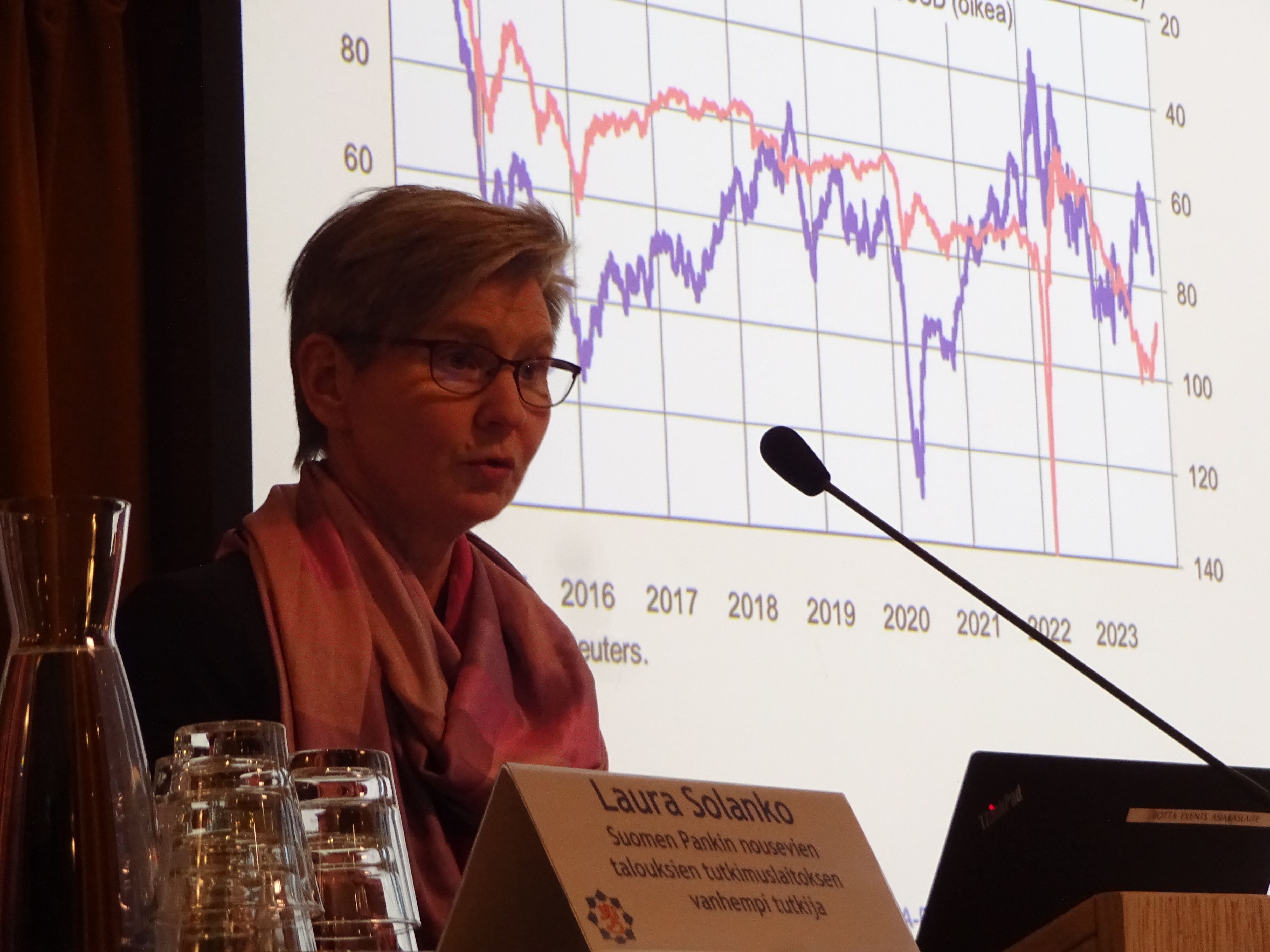 - Suomen Pankin nousevien talouksien tutkimuslaitoksen vanhempi neuvonantaja Laura Solanko teemanaan Pakotteiden vaikutukset Venäjän talouteen