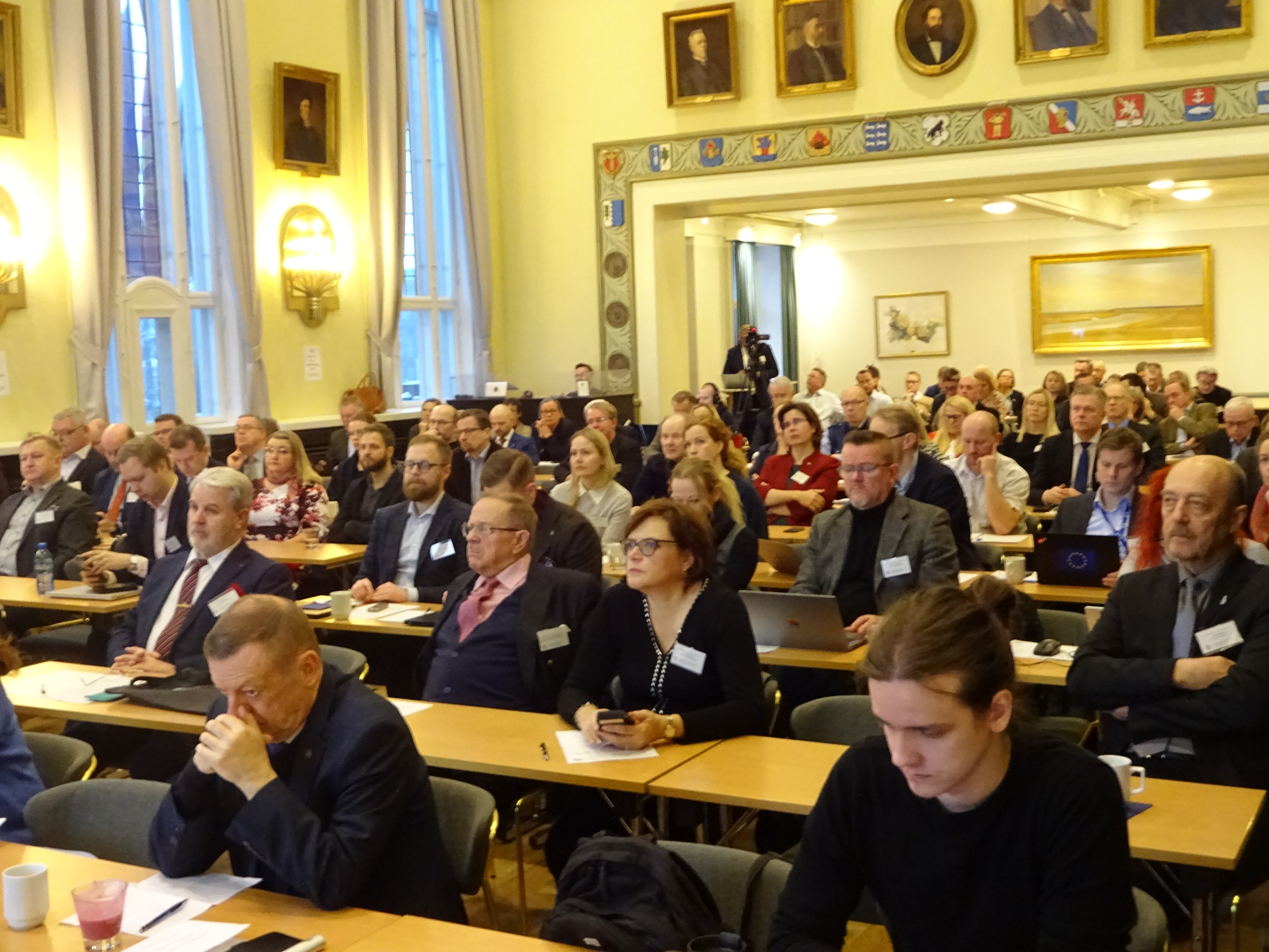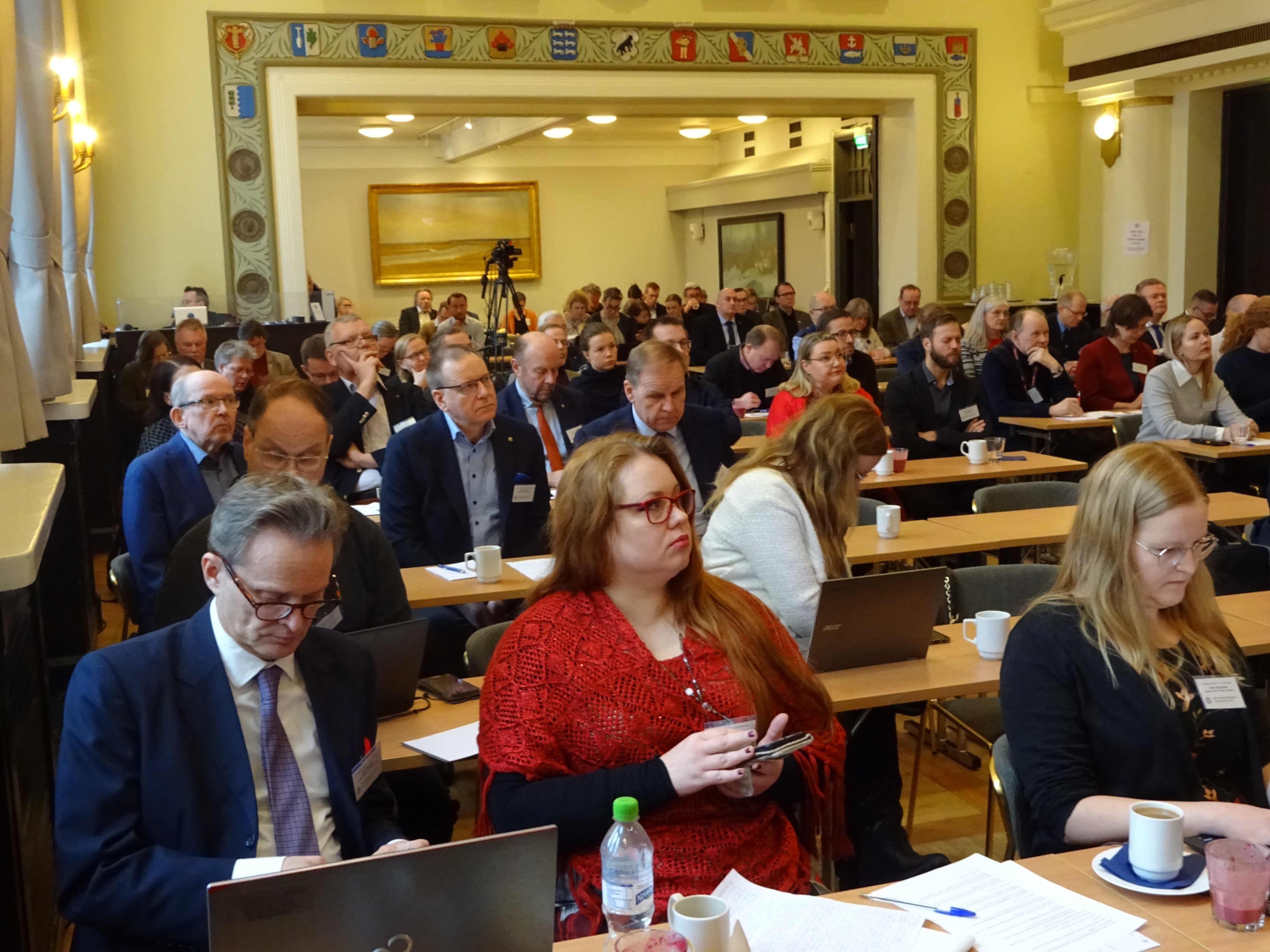 MTS:n journalistiseminaarin yleisöä 12.12.2023 Ostrobotnialla. Kuva: Markus Kinkku.