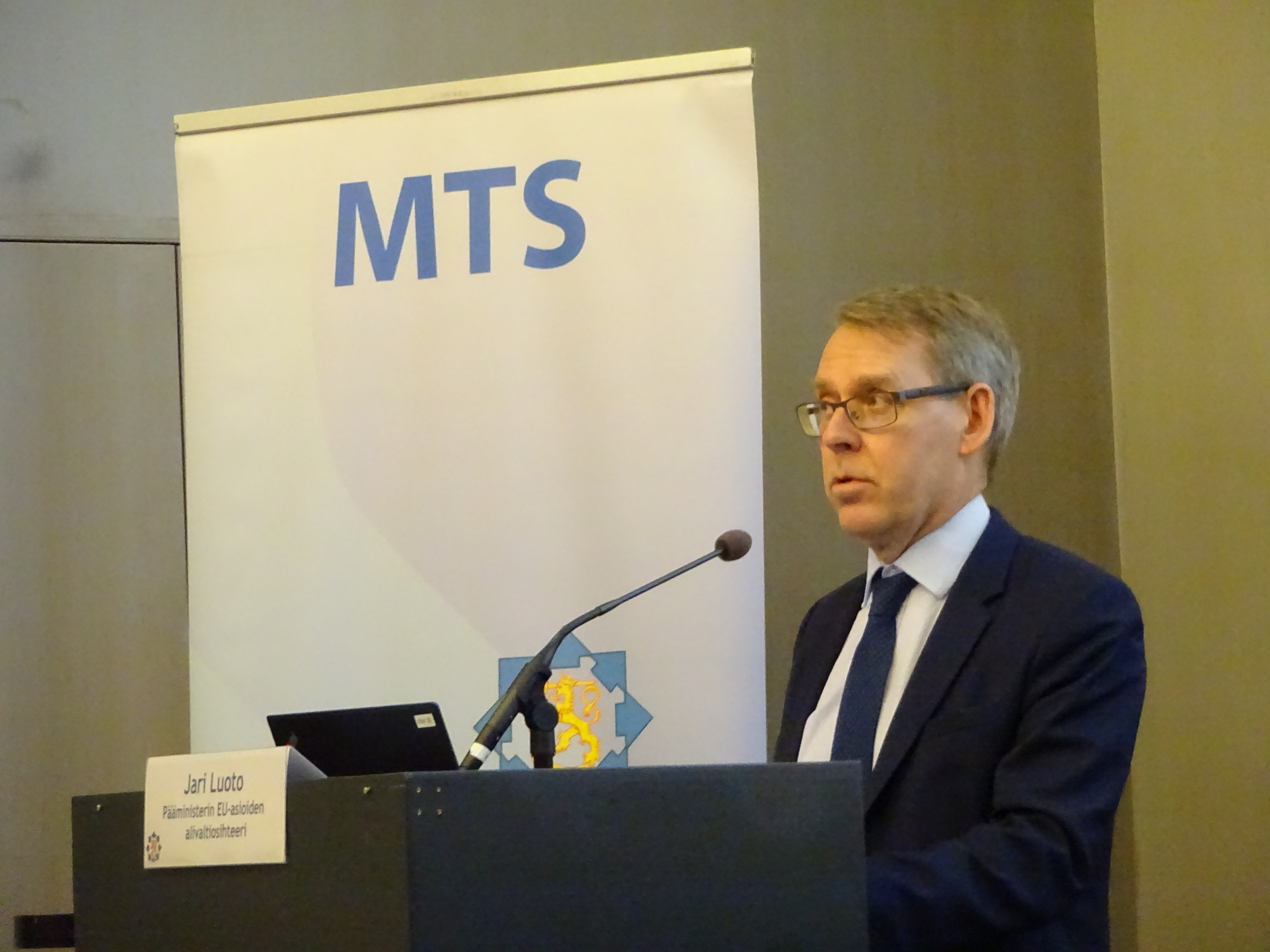 Pääministeri EU-asioiden alivaltiosihteeri Jari Luoto MTS:n journalistiseminaarissa 17.12.2019. Kuva: Markus Kinkku.