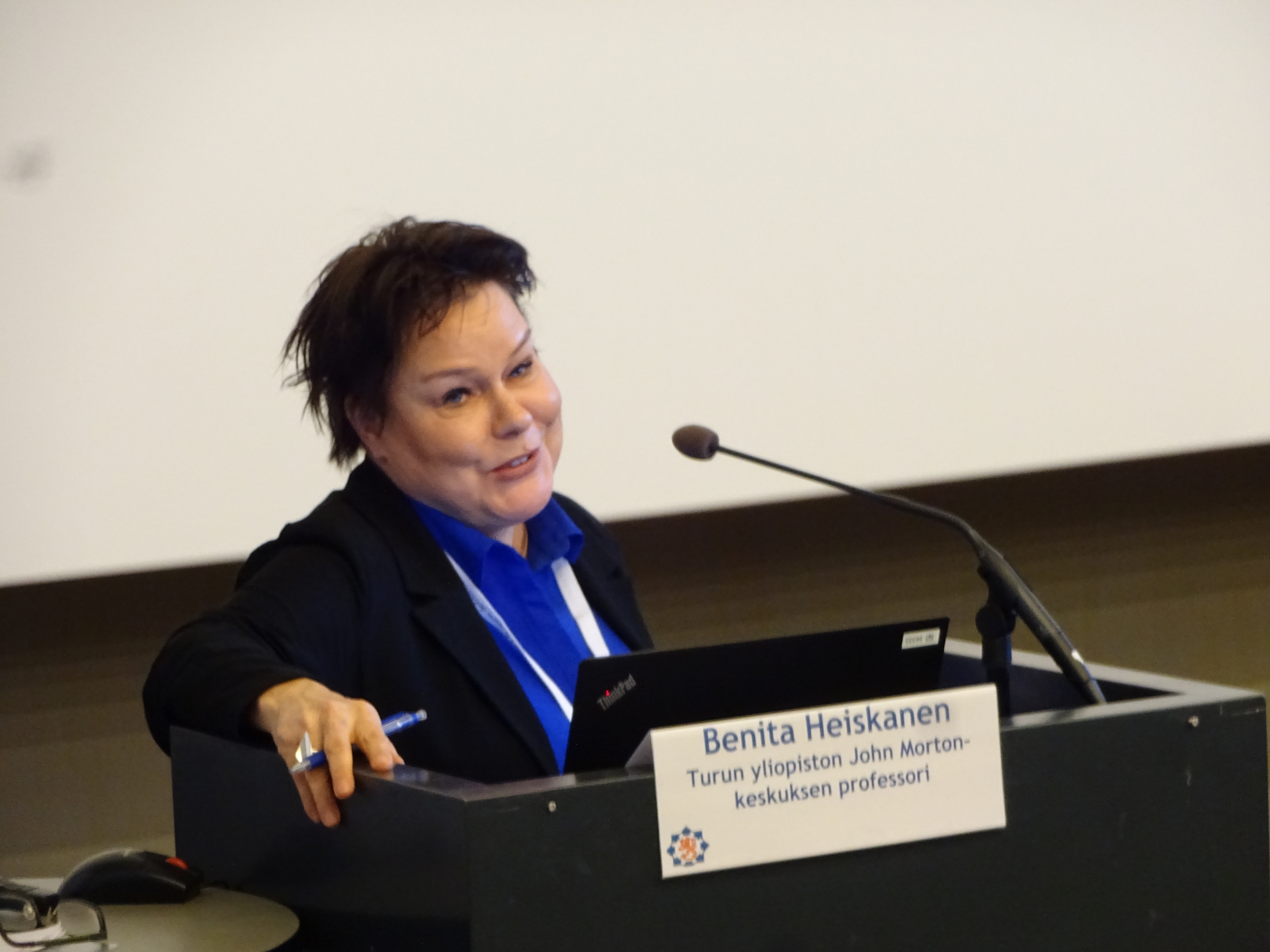 Turun yliopiston John Morton -keskuksen professori Benita Heiskanen MTS:n journalistiseminaarissa 17.12.2019. Kuva: Markus KInkku.