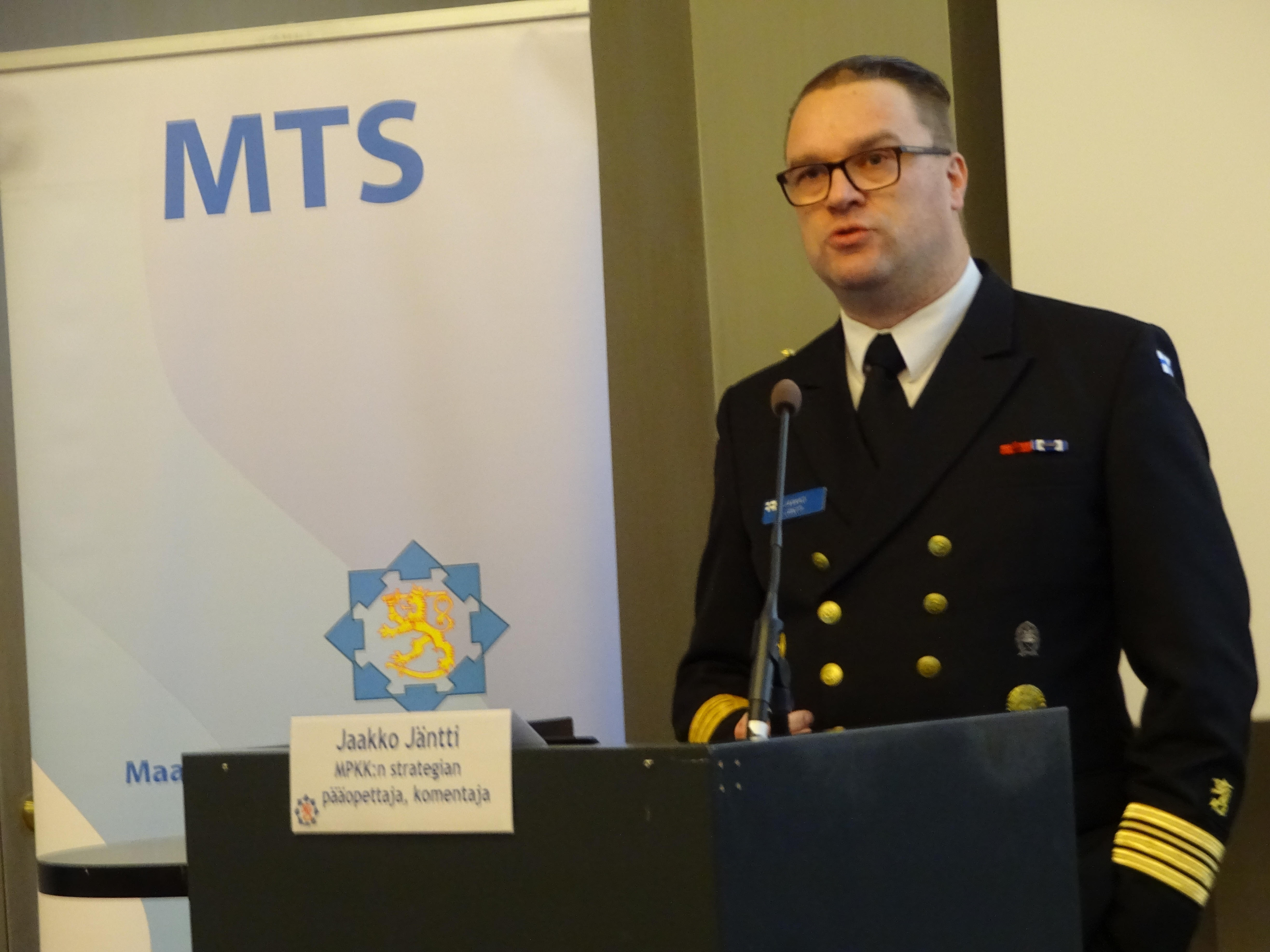 Maanpuolustuskorkeakoulun strategian pääopettaja, komentaja Jaakko Jäntti MTS:n journalistiseminaarissa 17.12.2019. Kuva: Markus KInkku.
