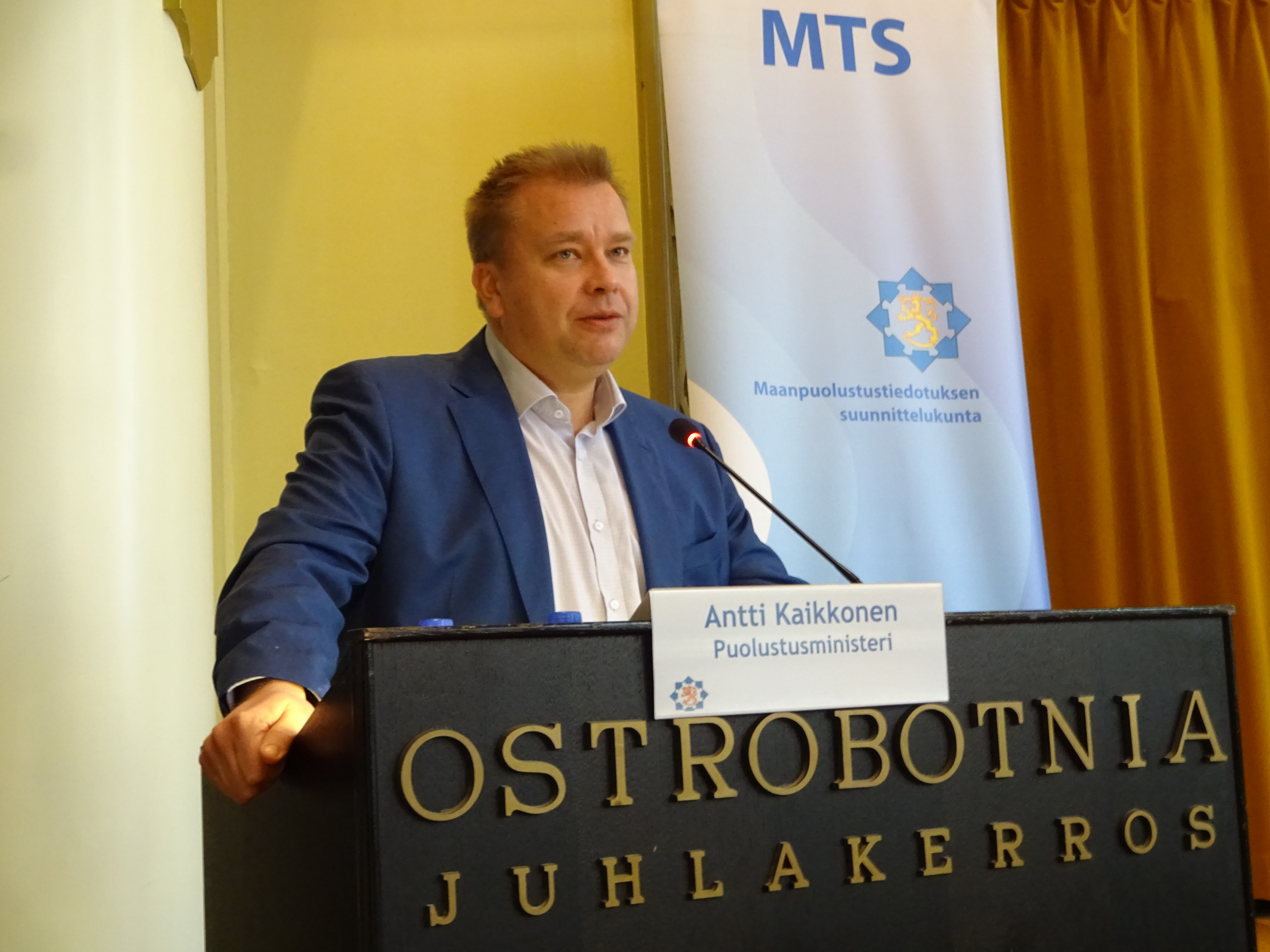 Puolustusministeri Antti Kaikkonen MTS:n Nuorisofoorumissa 26.10.2021 Ostrobotnian Juhlasalissa. Kuva: Markus Kinkku.