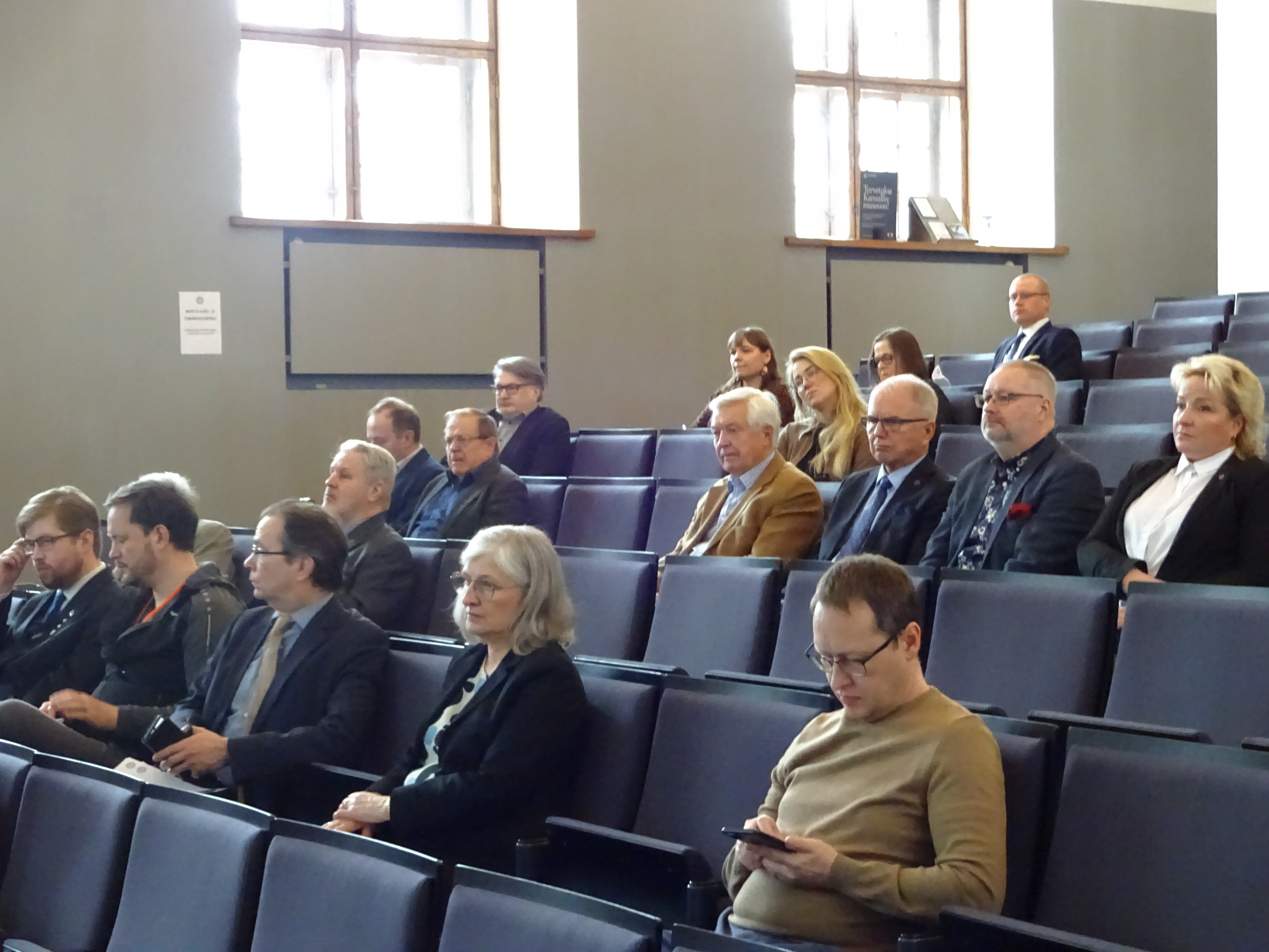 Kansallismuseon auditoriossa 28.2.2023 järjestetyn vaaliseminaarin yleisöä. Kuva: Markus Kinkku.