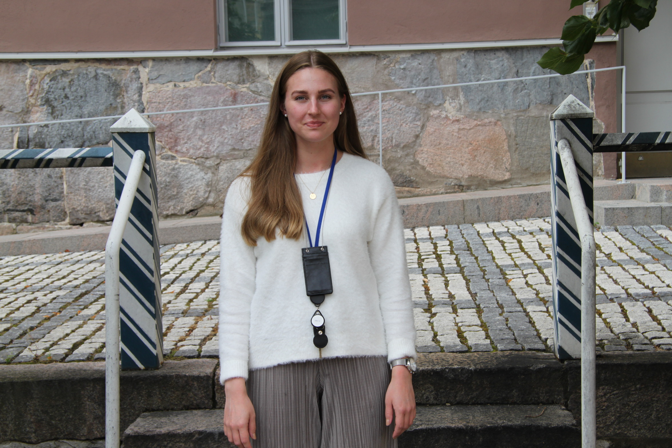 Högskolepraktikant Eevi Tihinen vid den interna personaladministrationen
